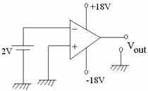 terminal (equal to 0.5V). Since no current flows feedback resistances, the output voltage is also equal to 0.5V.