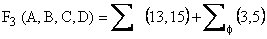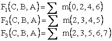 0, 1, 1, 1, respectively. Thus f = A+B.