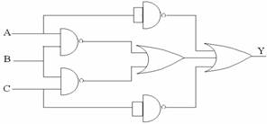 b. For the logic circuit shown in Fig. below, the output y is equal to