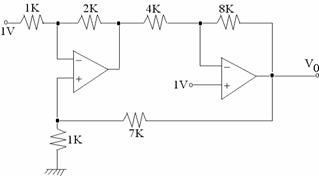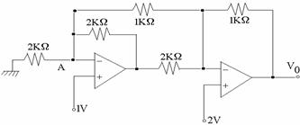 the output voltage of the following circuit assuming ideal op-amp behaviour. (5)
